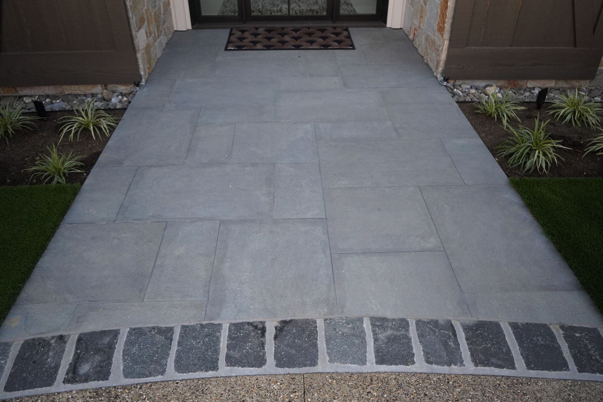Stamped concrete replicates natural stone, slate, granite, wood, or brick using imprinted patterns.