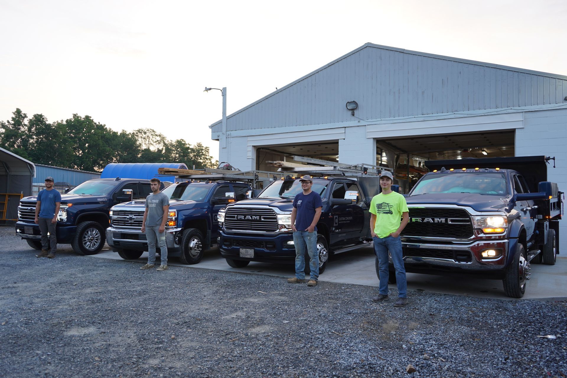 During site prep, we excavate, grade and install a stable base to prevent future movement and water pooling. When pouring, we use a concrete mix specified for the job, whether it needs to handle vehicle traffic or pedestrian use, then place and level it.