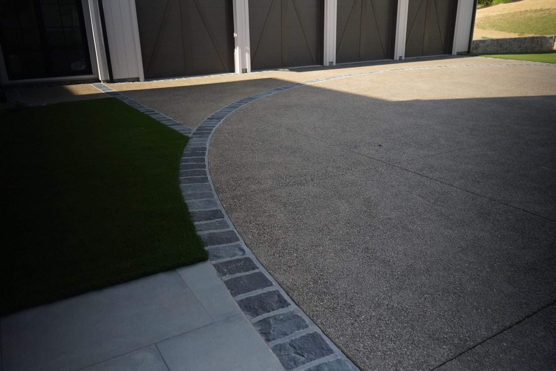 We design exposed aggregate surfaces for concrete driveways using reinforced mixes and control joints to carry vehicle loads without premature cracking. For pool decks and patios, we use fine aggregate and sealing options that deliver superior slip resistance in wet areas.